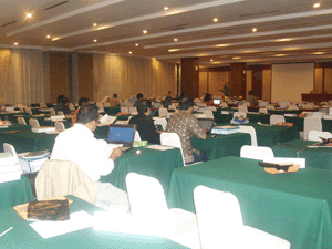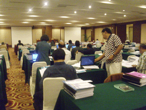 BAN-PT Jakarta Sewa Komputer di Hotel Saphir Sewa komputer untuk akreditasi Perguruan Tinggi se Indonesia. Rental komputer dan juga rental printer untuk mencetak dokumen. Sewa laptop / rental notebook digunakan untuk input dan proses data. Sebagian penilai masih mengerjakan tugasnya meskipun waktu istirahat.